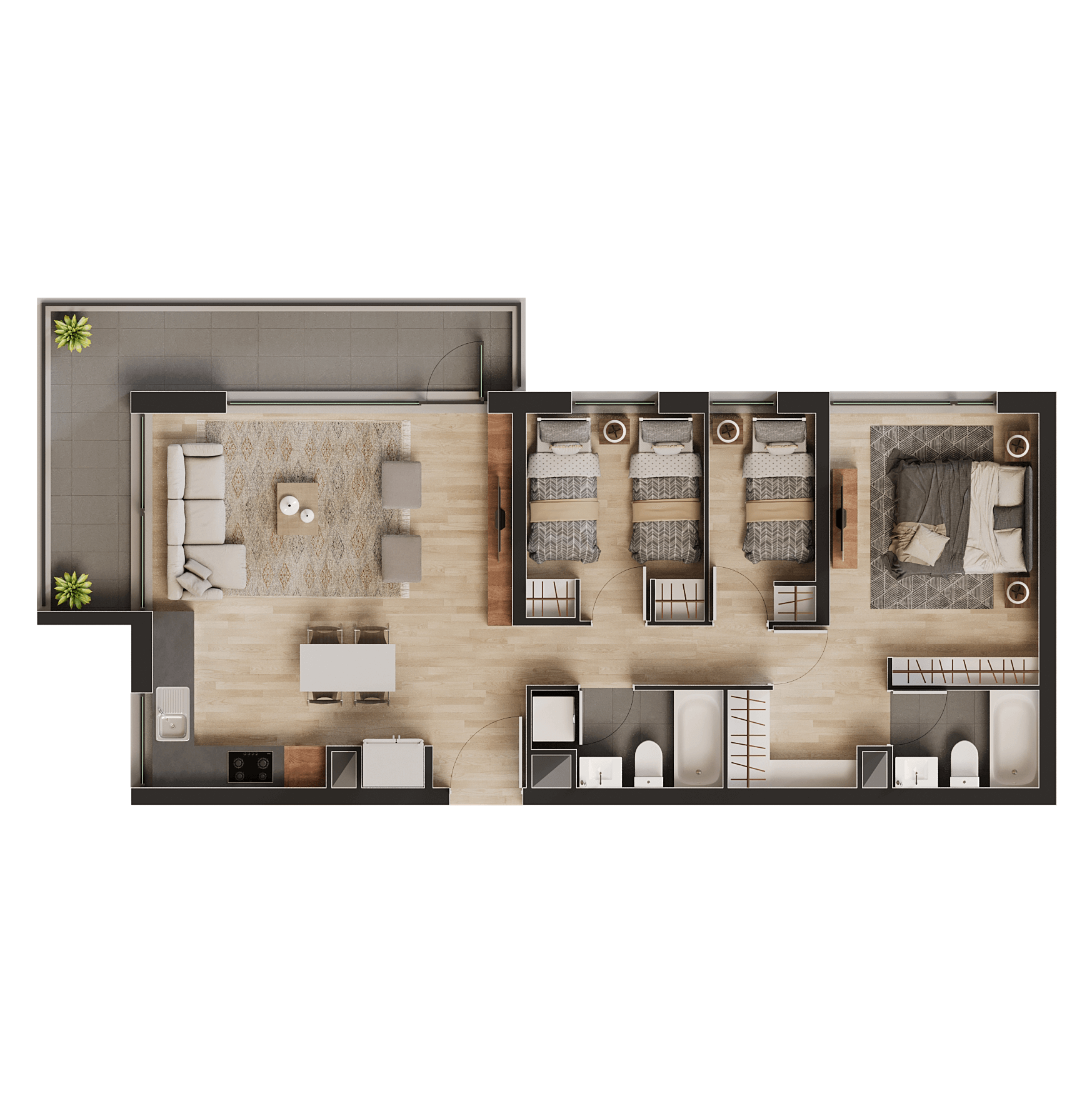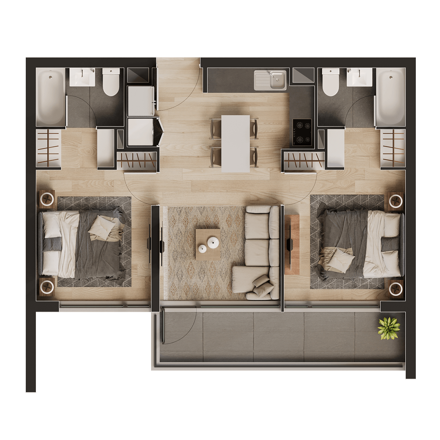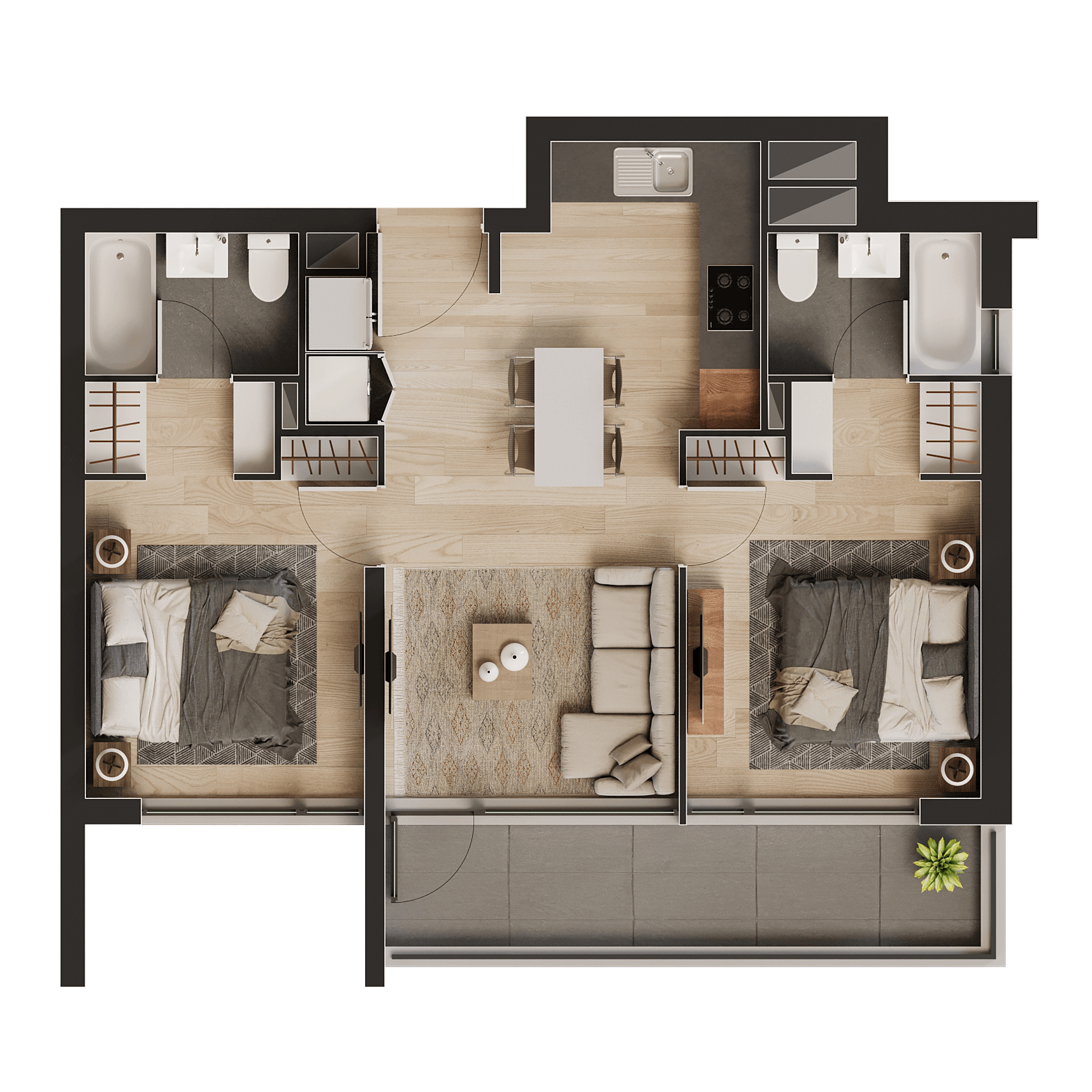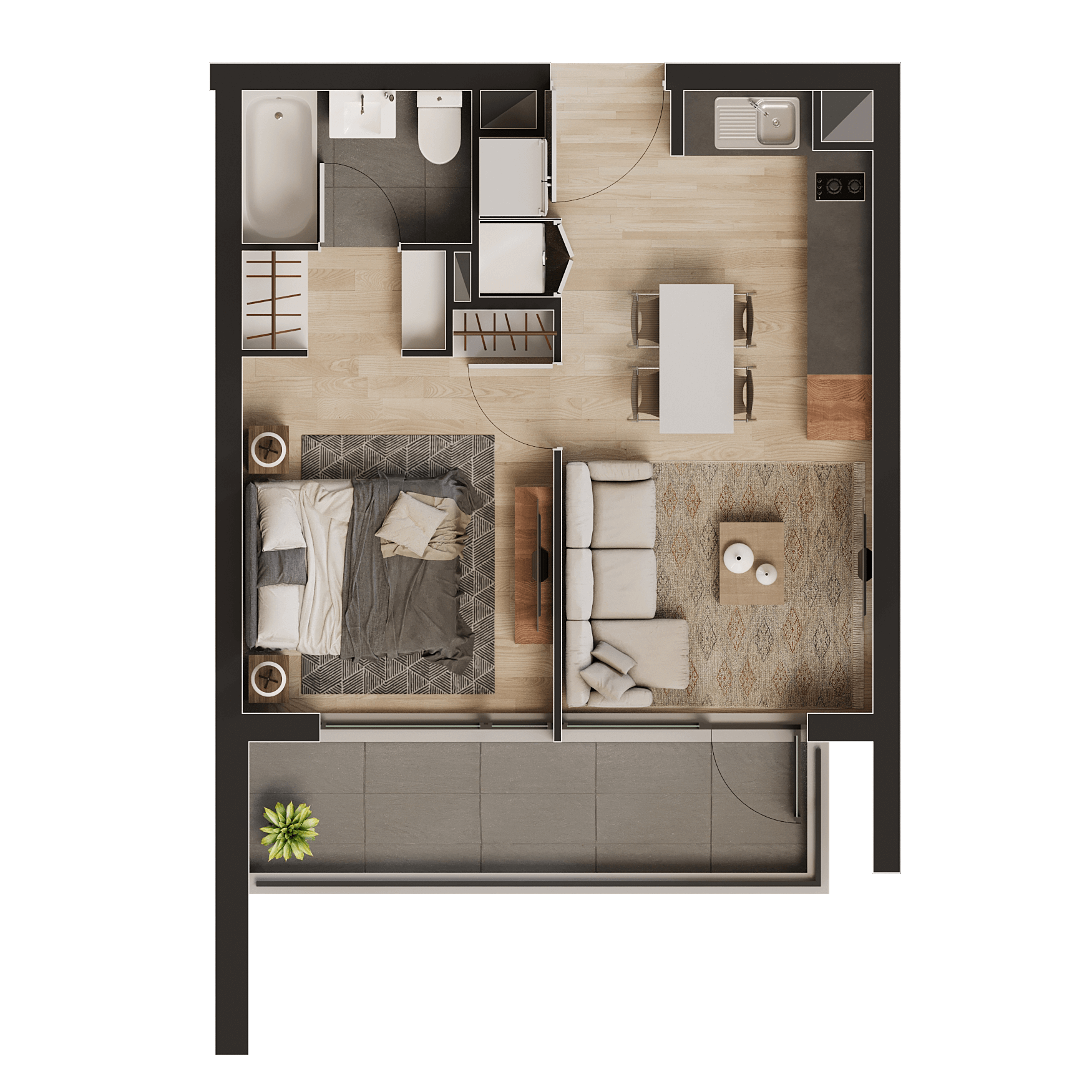 Este proyecto ha sido diseñado para tu bienestar, permitiéndote disfrutar de diversas comodidades sin necesidad de salir de casa. Relájate en el gimnasio, organiza reuniones con amigos en el salón gourmet y sorpréndenos con tus habilidades culinarias. Alternativamente, puedes trabajar desde la zona de coworking.