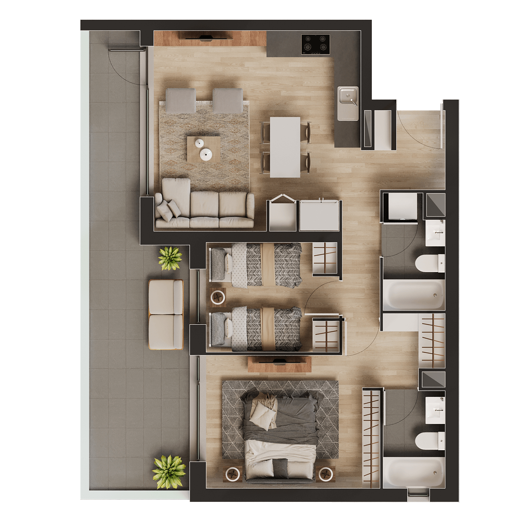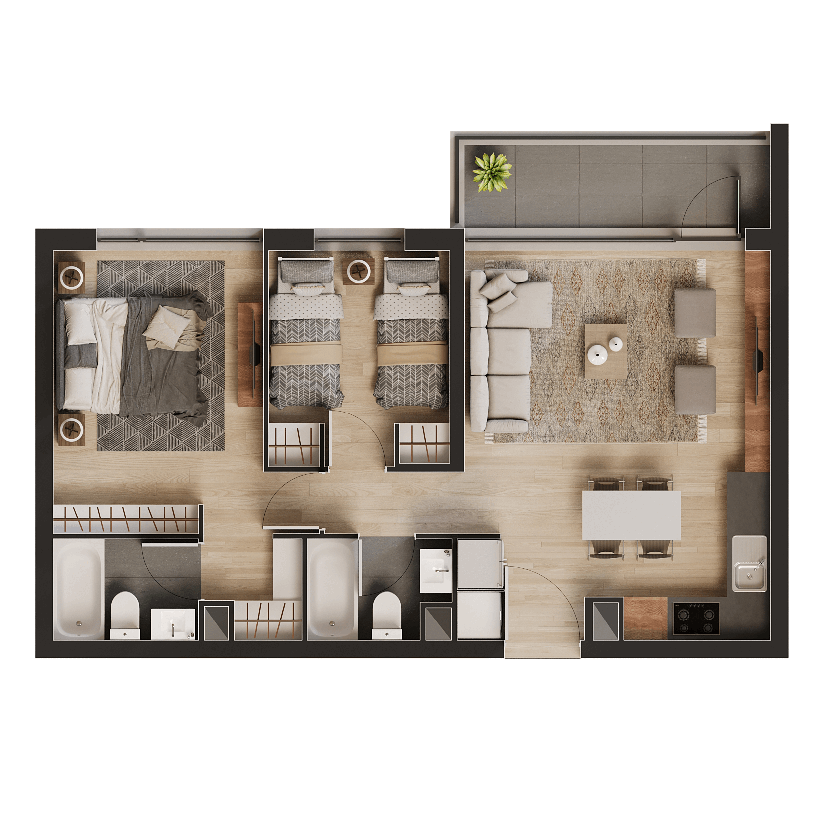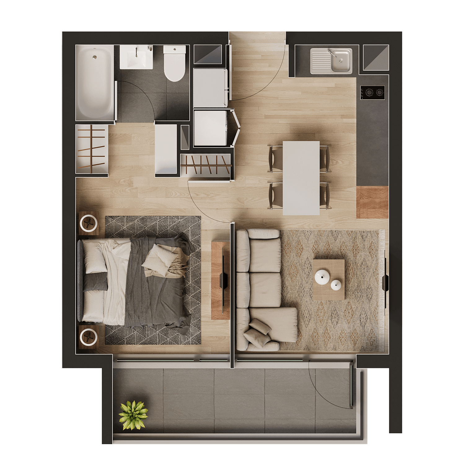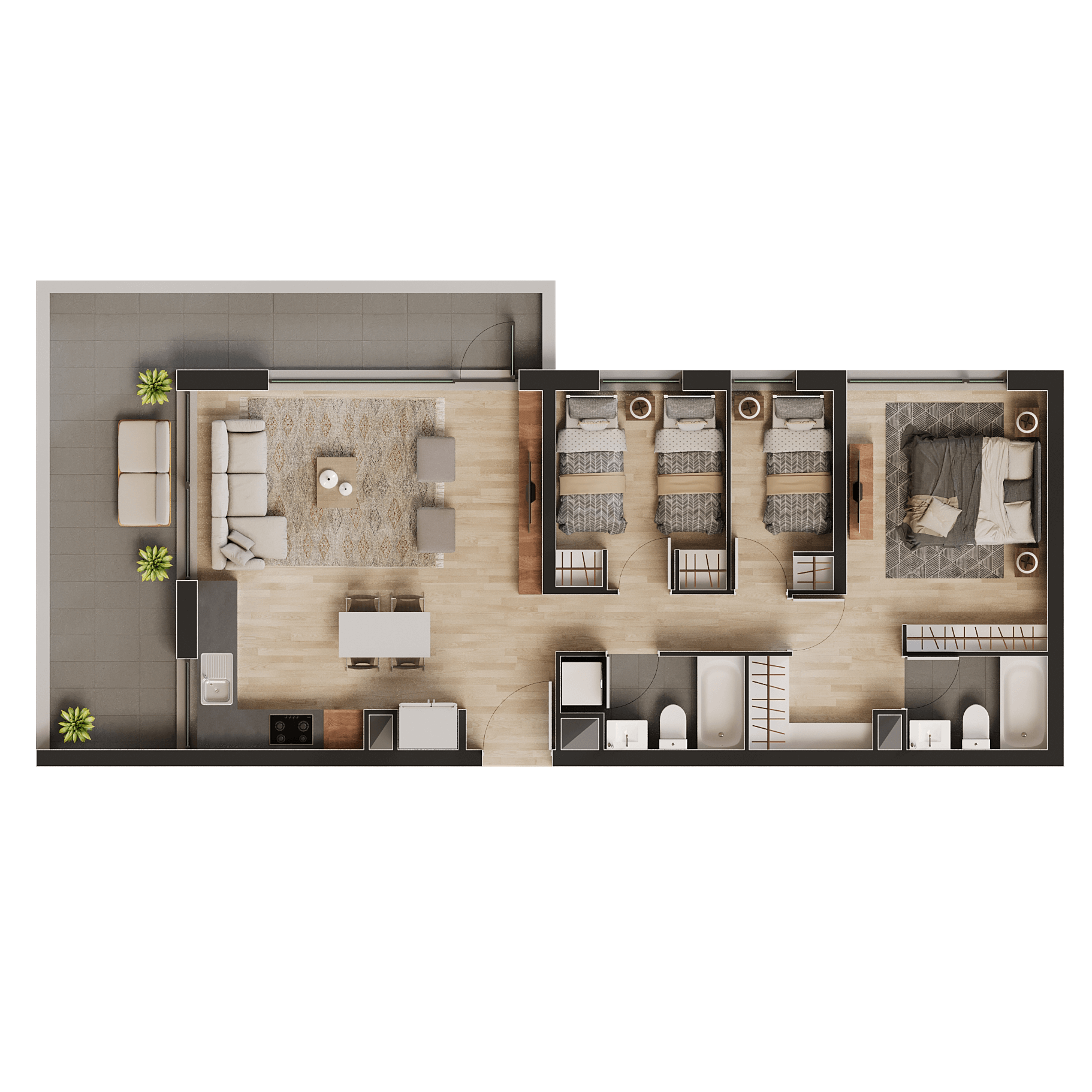 Este proyecto ha sido diseñado para tu bienestar, permitiéndote disfrutar de diversas comodidades sin necesidad de salir de casa. Relájate en el gimnasio, organiza reuniones con amigos en el salón gourmet y sorpréndenos con tus habilidades culinarias. Alternativamente, puedes trabajar desde la zona de coworking.