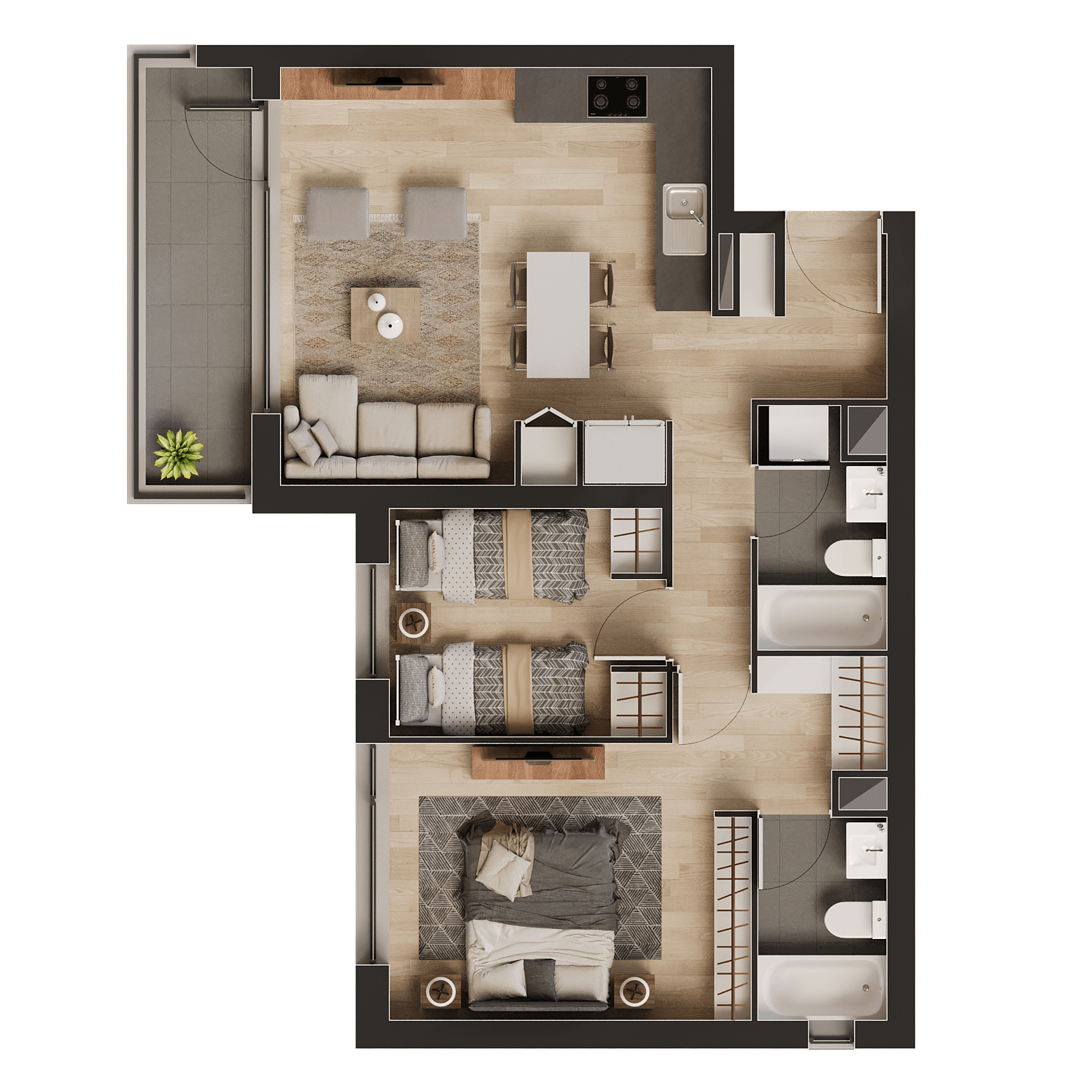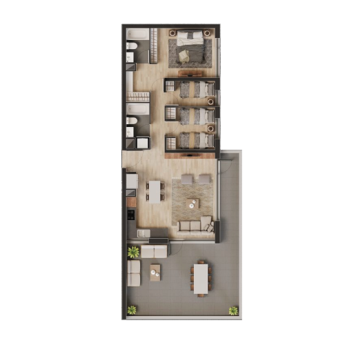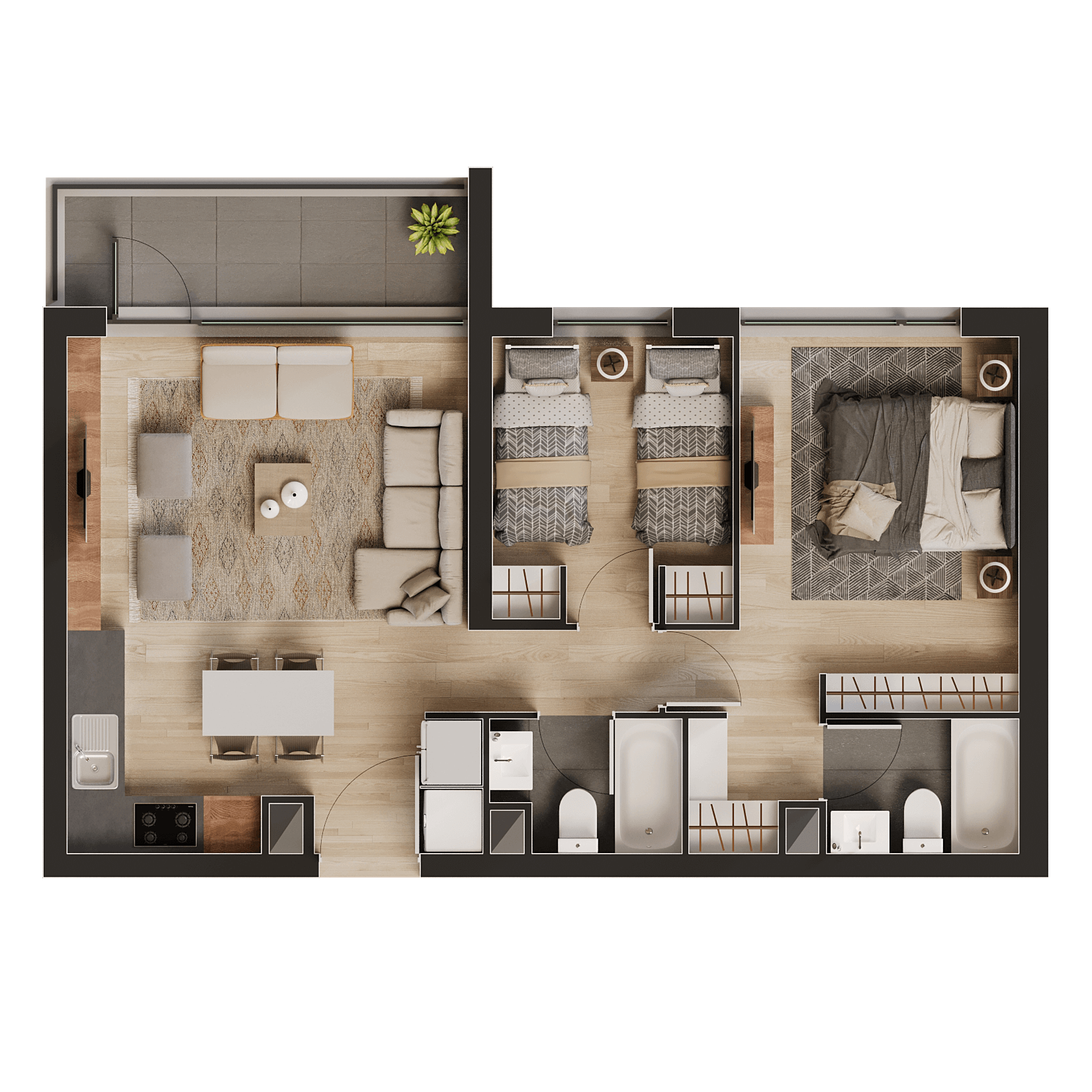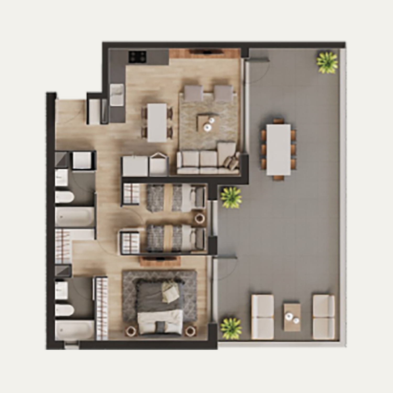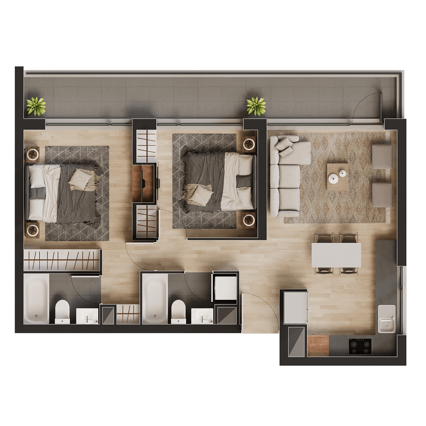 Este proyecto ha sido diseñado para tu bienestar, permitiéndote disfrutar de diversas comodidades sin necesidad de salir de casa. Relájate en el gimnasio, organiza reuniones con amigos en el salón gourmet y sorpréndenos con tus habilidades culinarias. Alternativamente, puedes trabajar desde la zona de coworking.